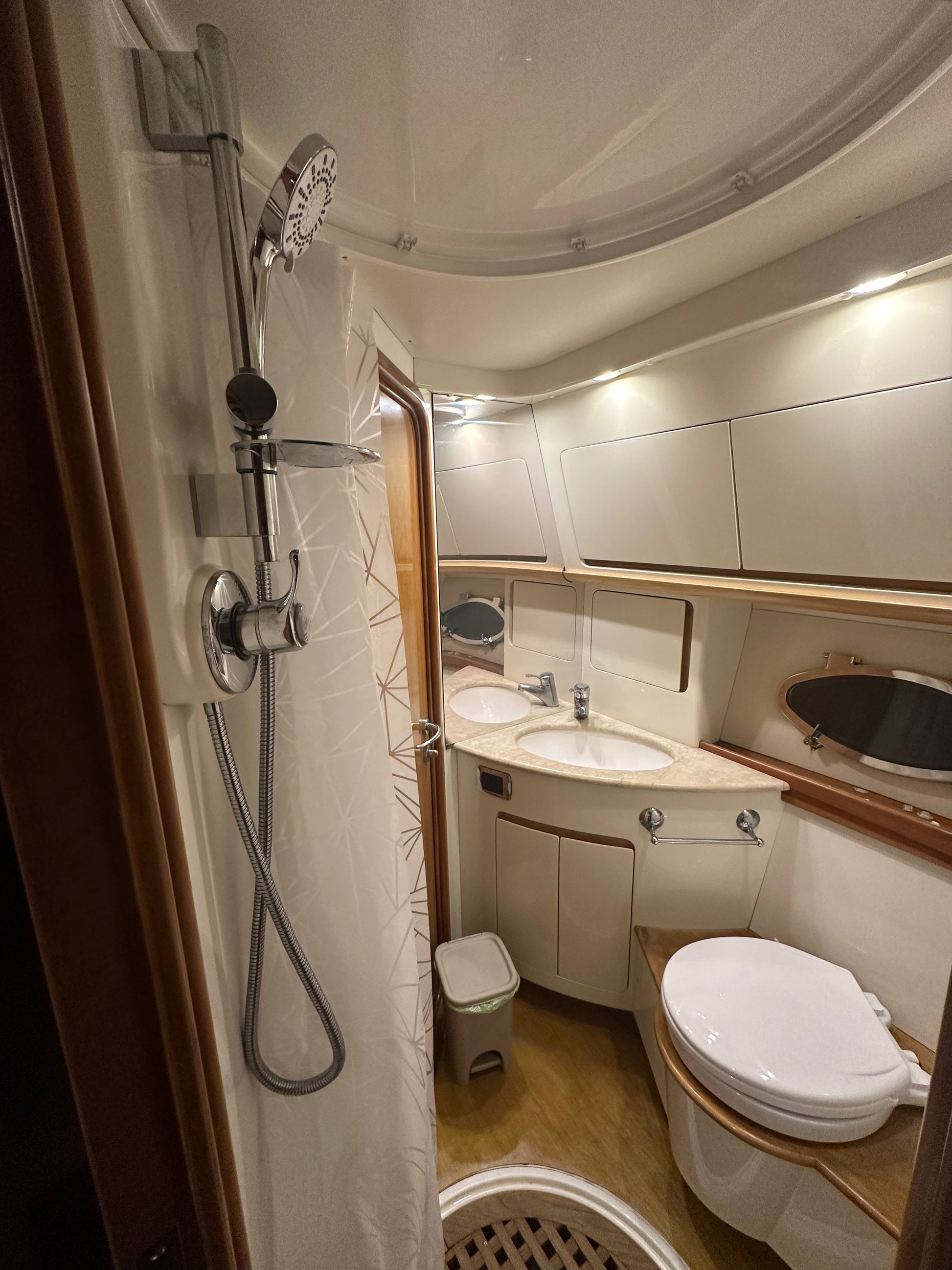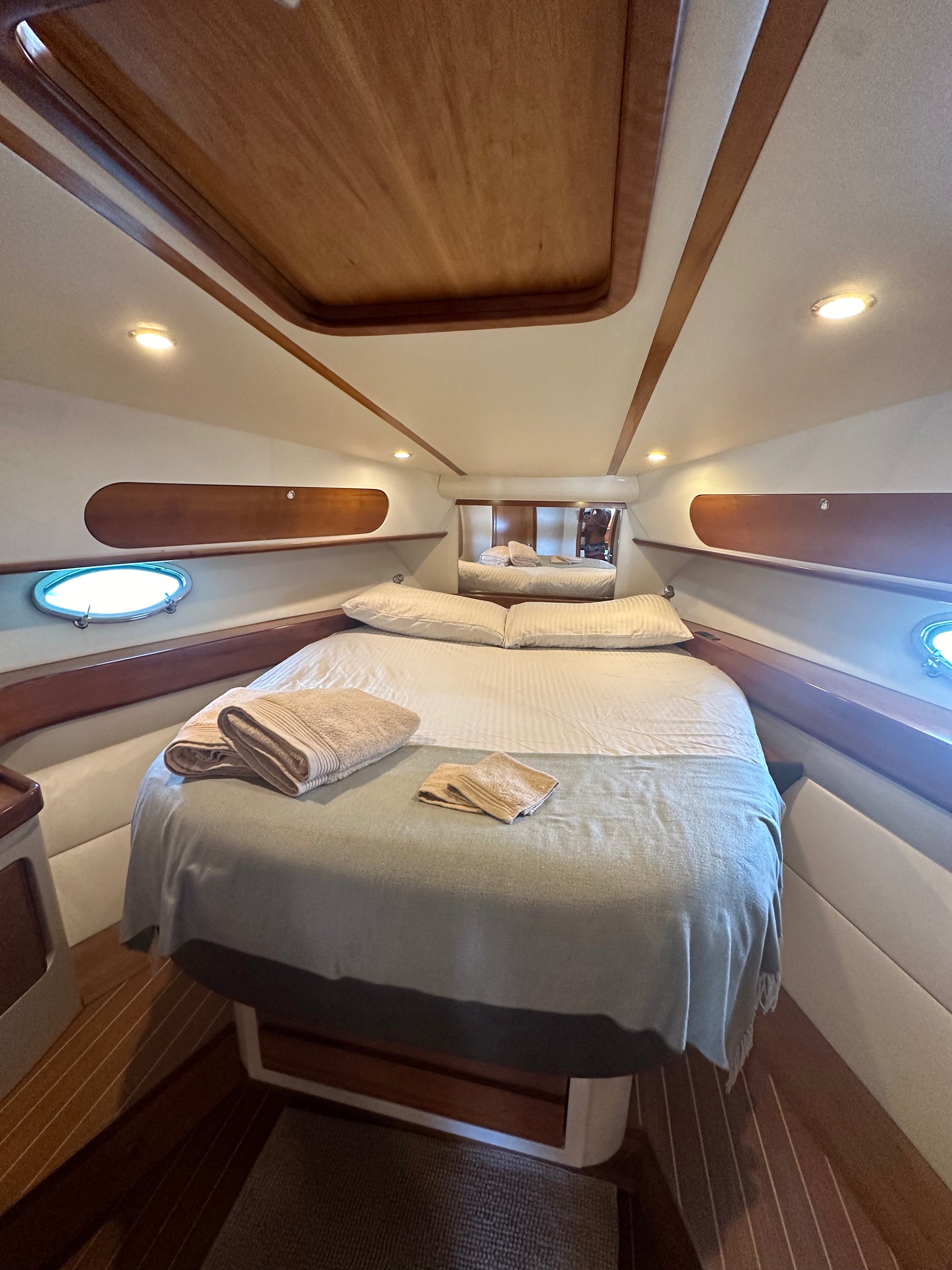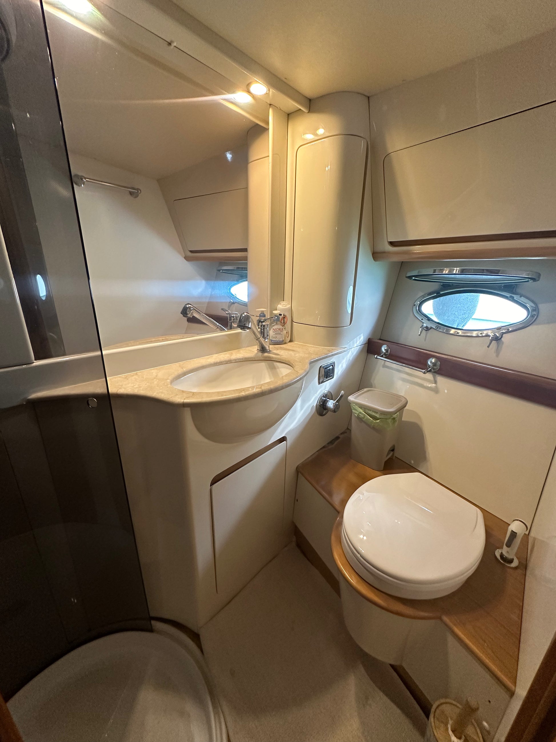 Asciugamani, impianto audio bluetooth, doccia e prendisole sia a poppa che a prua