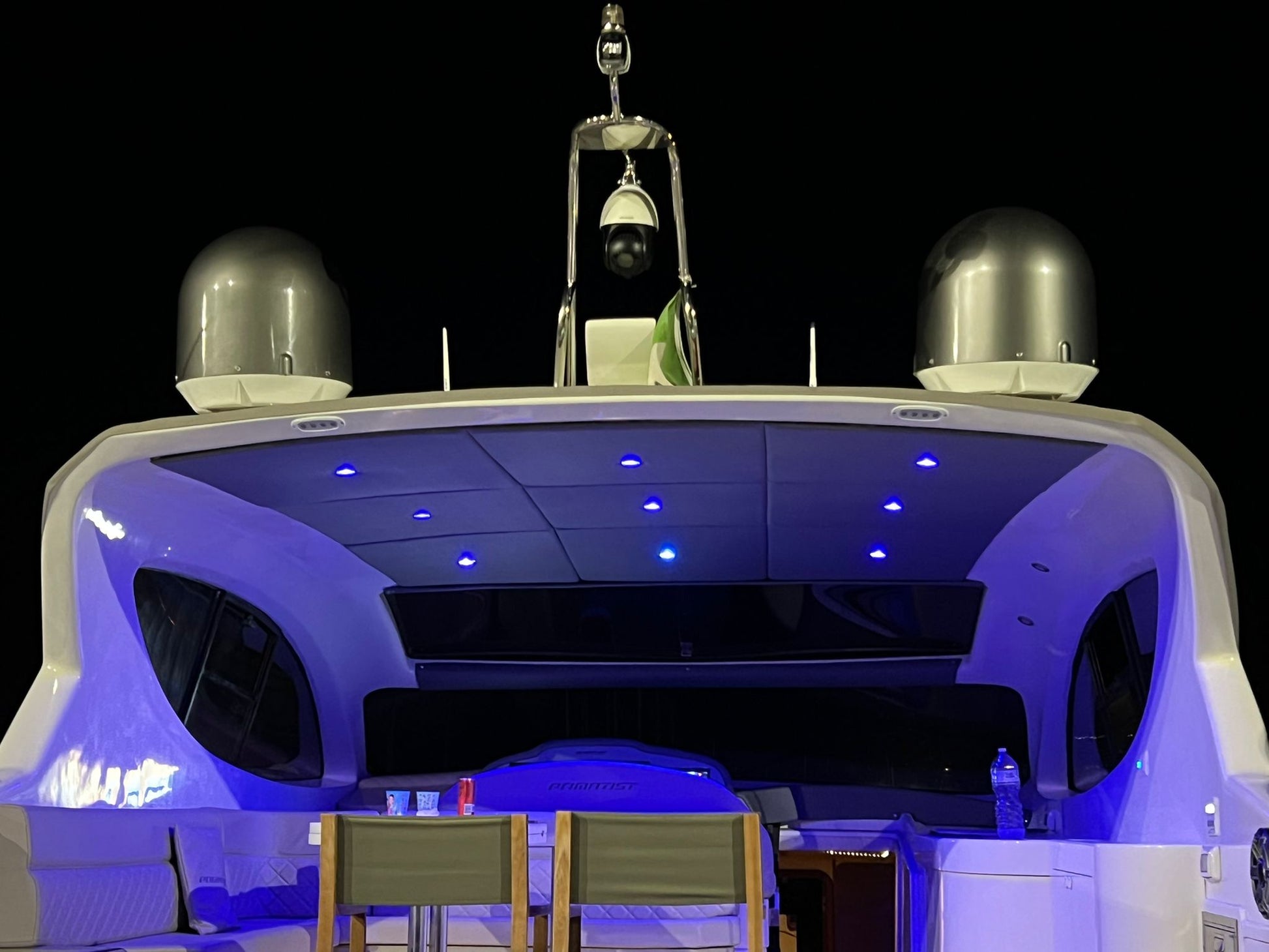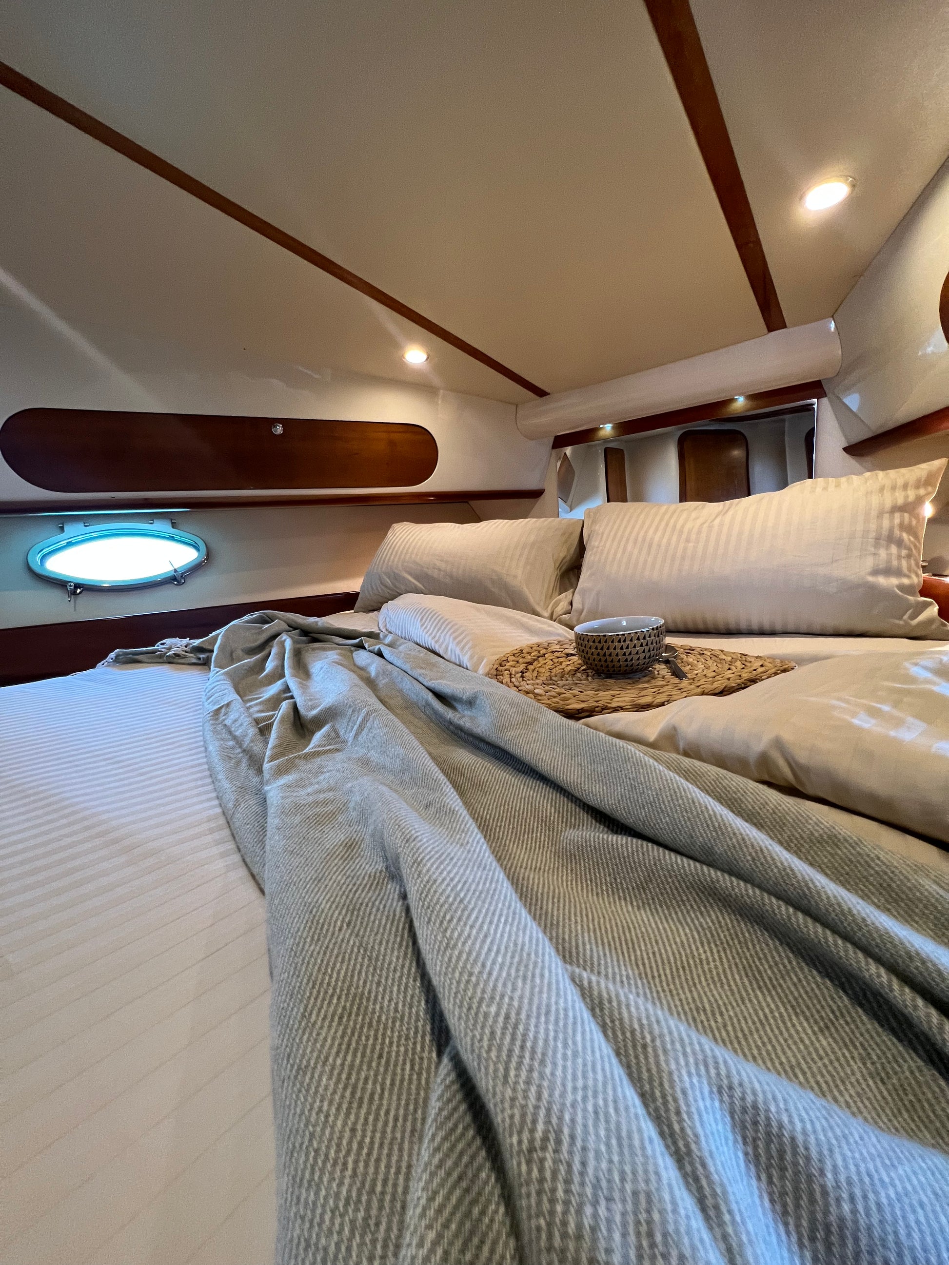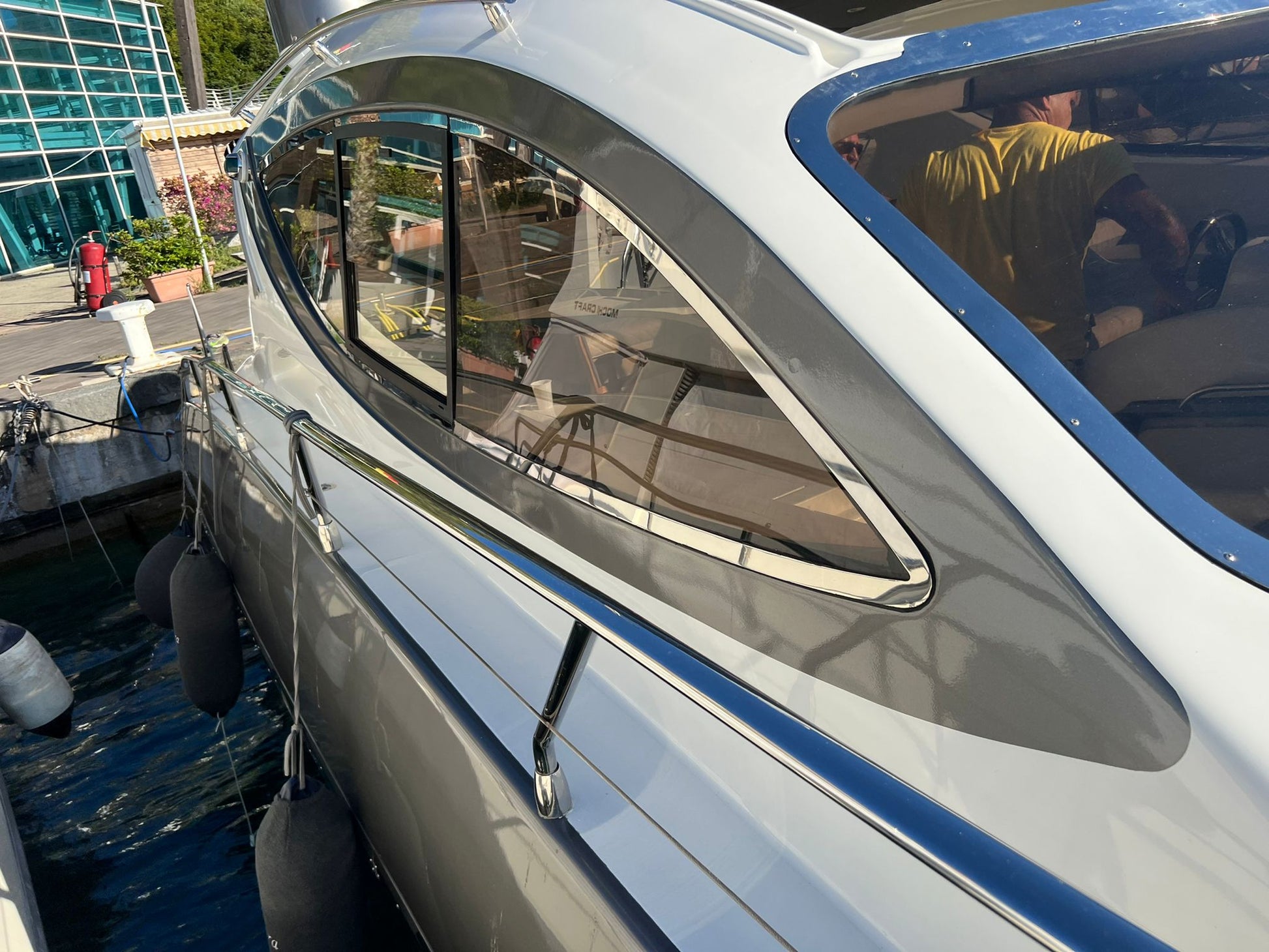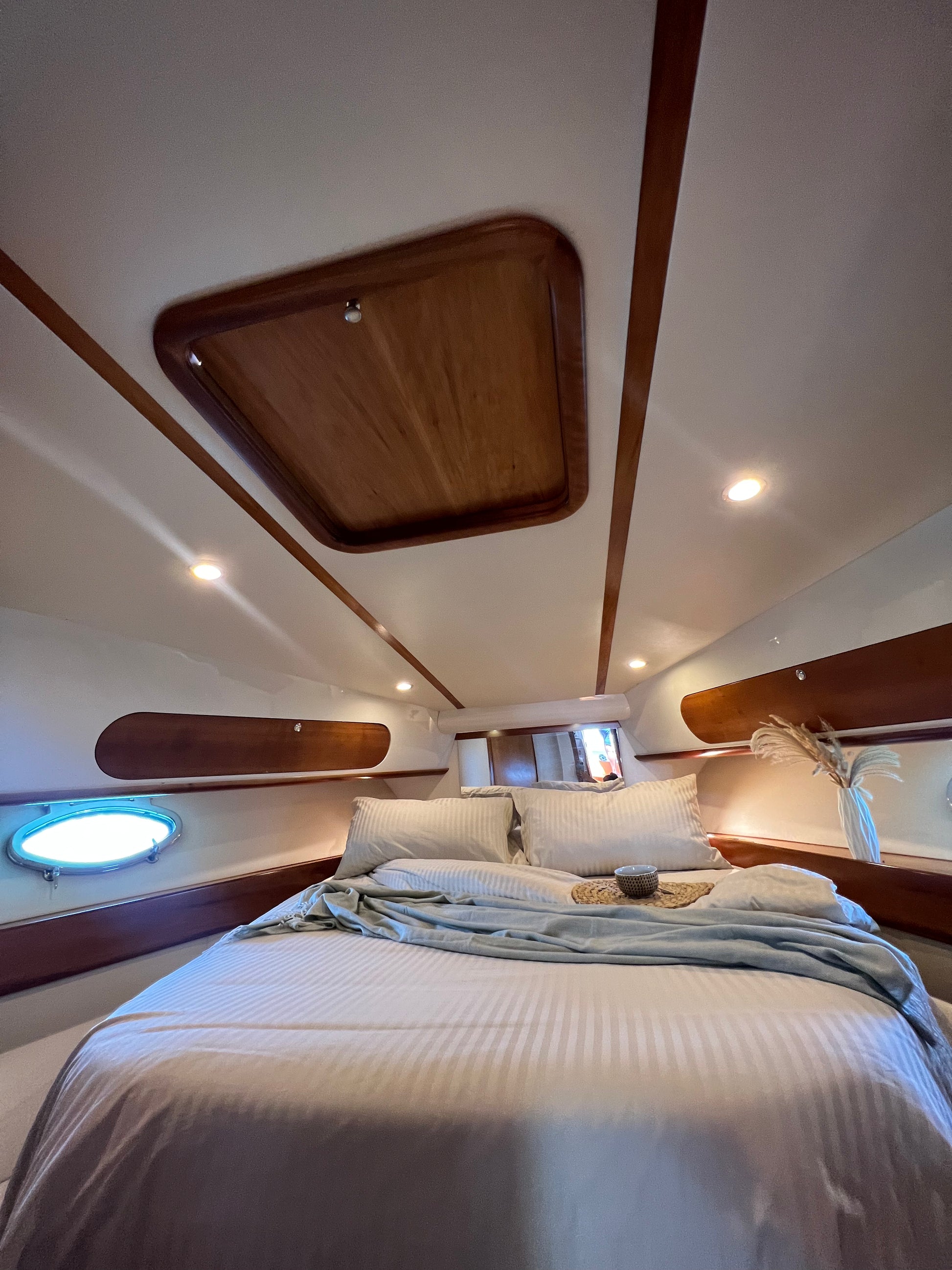 Asciugamani, impianto audio bluetooth, doccia e prendisole sia a poppa che a prua